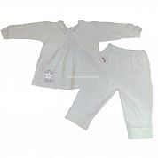Кофточки-туники с отложным воротничком, с длинным рукавом на манжете, с 2 кнопочками сзади. Кофточка украшена вышивкой в виде цветочка, имитацией болеро из жатой ткани.