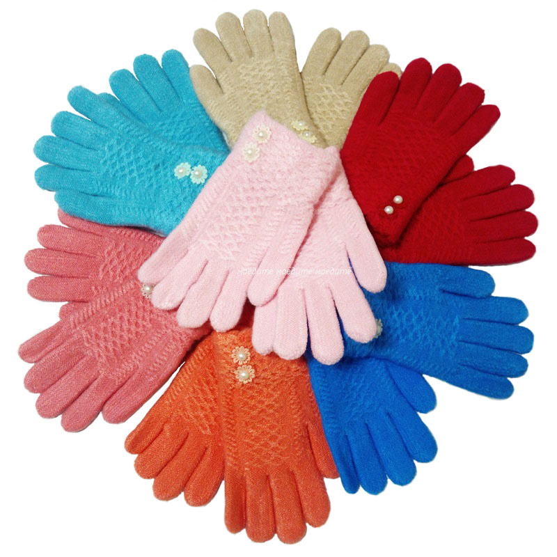 Перчатки детские однотонные с цветочками
